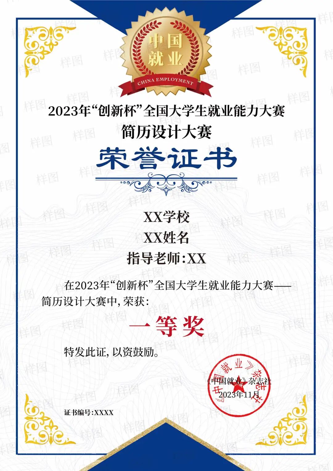 3.简历经主办单位考官评分后,根据分值排序生成获奖名单,获奖者将获得《中国就业》杂志社统一颁发的获奖证书。