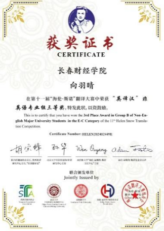 喜报 | 我校外国语学院学子在第十一届“海伦·斯诺”翻译大赛中获佳绩