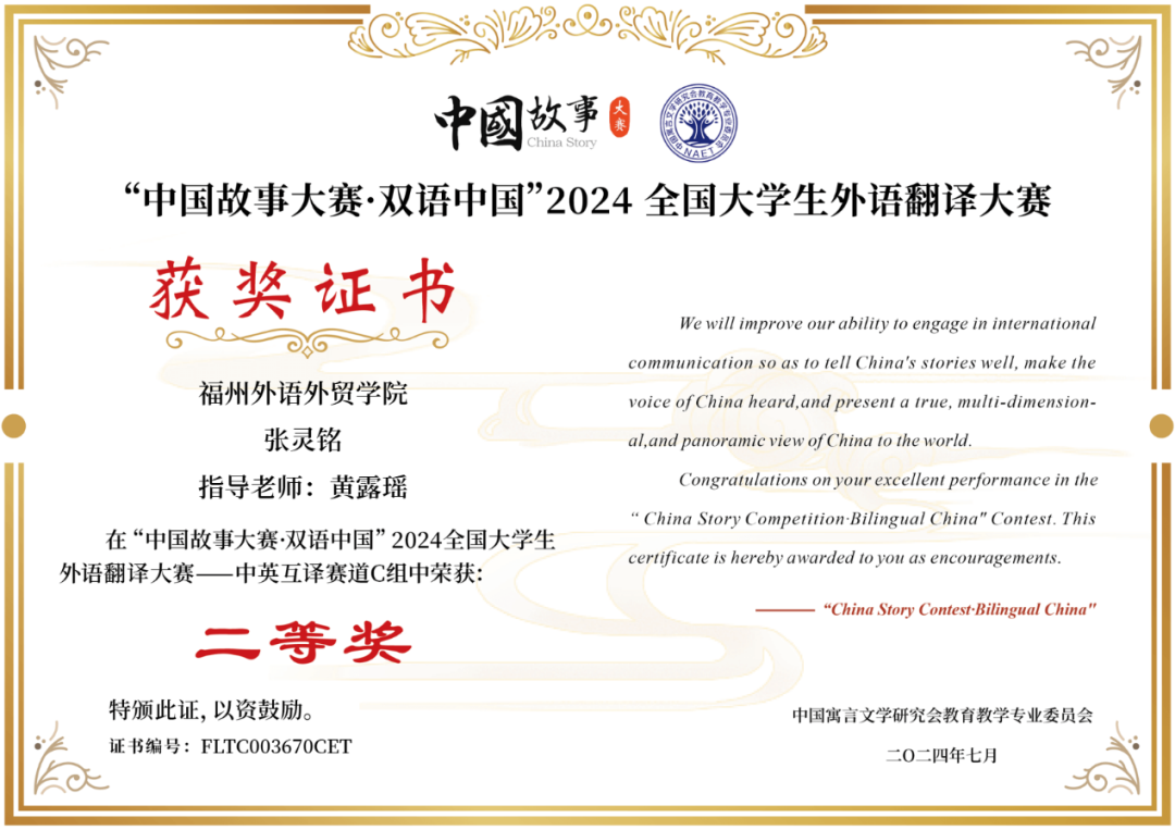 喜报|我院学子荣获“中国故事大赛·双语中国” 2024全国大学生外语翻译大赛全国二等奖