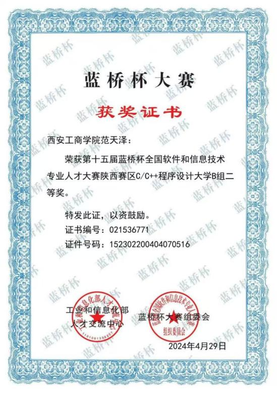 “作为一名学生,能够获得国家奖学金,是学习生涯中的最大荣幸。”这份荣誉不仅是对范天泽同学过往努力的认可,更是对他未来继续前行的鞭策。大学生活已经过半,他也从一个懵懂的孩子成长为一个在学习和生活中都能游刃有余的独立个体。他说最要感谢他的老师和亲人,若不是有老师们的谆谆教诲和亲人们的全力支持,他不可能获此殊荣。此外,他还要感谢同学和朋友,若不是他们支持与陪伴,这漫漫长路肯定艰难数倍。因此,他心怀感恩,努力增进自己的能力,用优异的成绩来回报他们对自己的帮助。