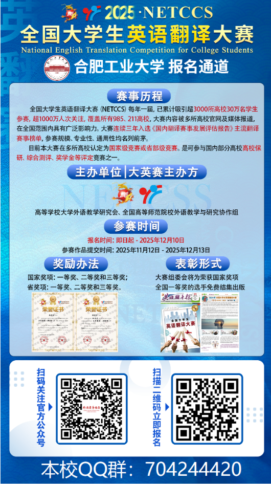 【大英赛主办方】2025年全国大学生英语翻译大赛 · NETCCS
