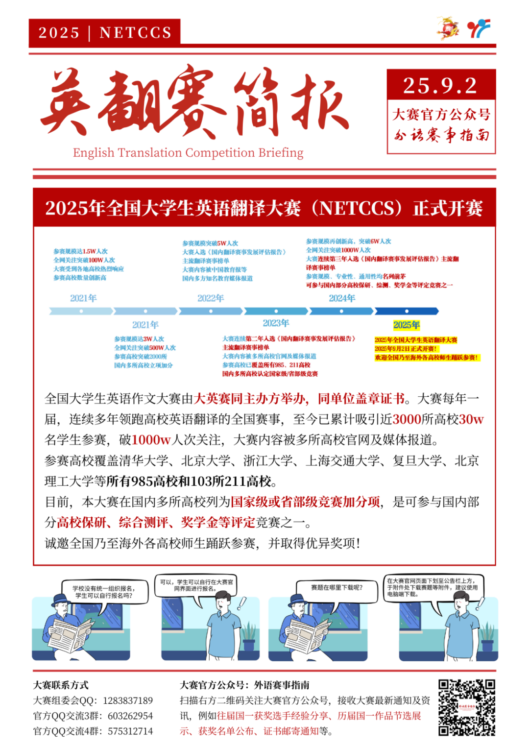 注:2024年金牌作品专刊结集出版了2024年全国英翻赛国一获奖选手优质作品,可为本届参赛提供重要参考学习。