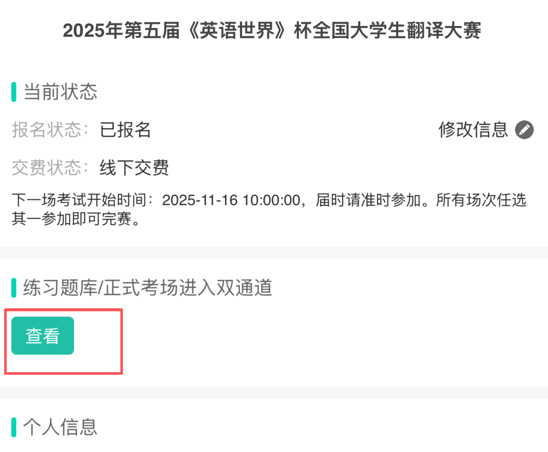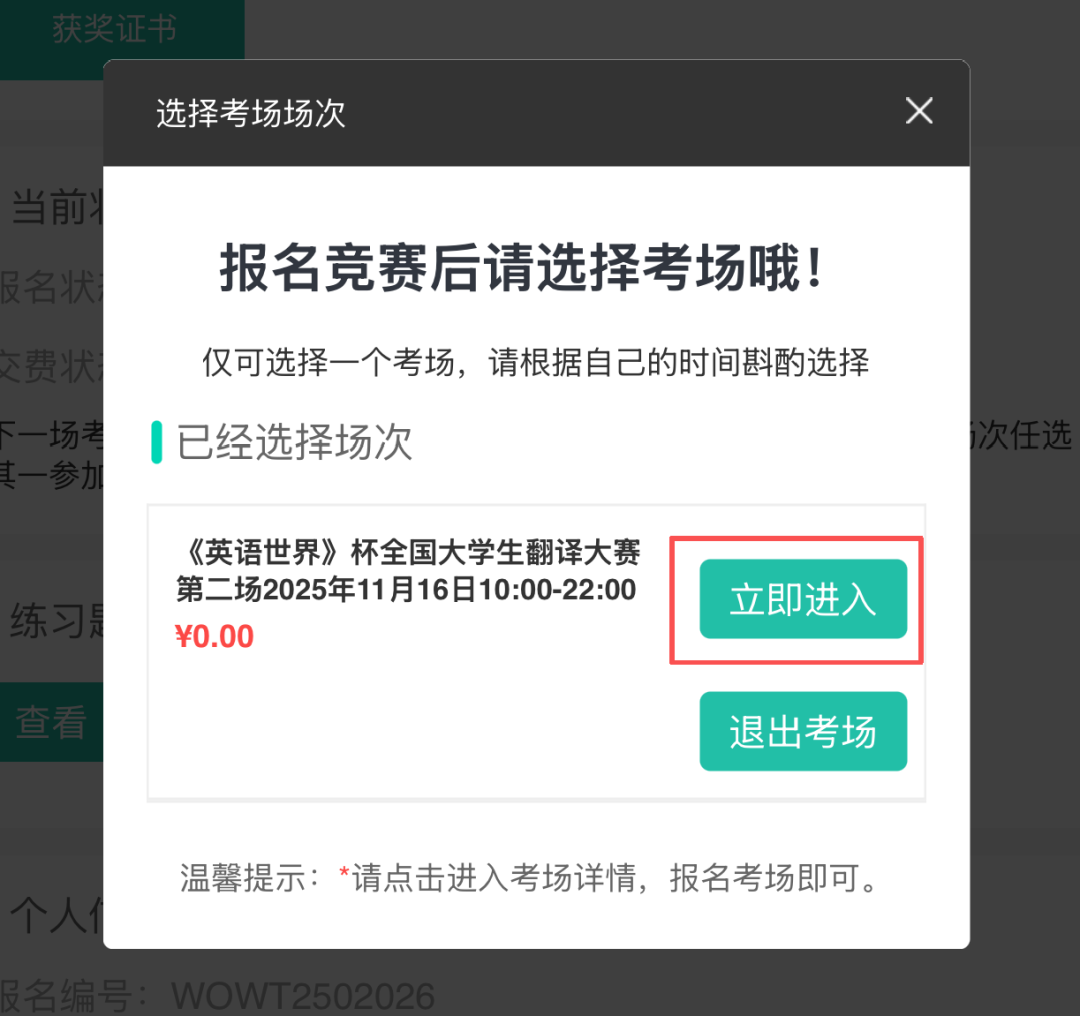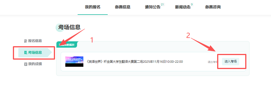 登录大赛官网-个人中心-我报名的伟德足球官网下载手机版安装-报名管理-考场信息-进入考场