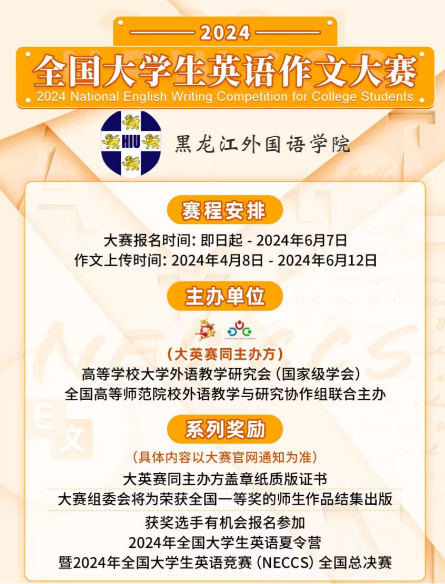 由高等学校大学外语教学研究会、全国高等师范院校外语教学与研究协作组联合主办的“2024年全国大学生英语作文大赛”经过专家组多轮严格评阅,于2024年7月末公示获奖名单,我校英语系师生共计获奖30项,其中包括国家级奖项4项、省级奖项26项。