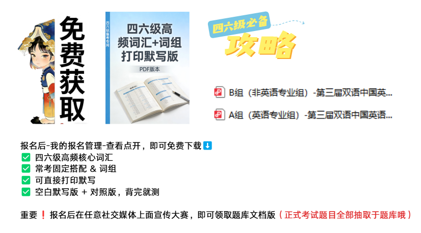 3.报名后可自行下载【四六级高频词汇+词组+打印默写pdf版本】需用电脑下载