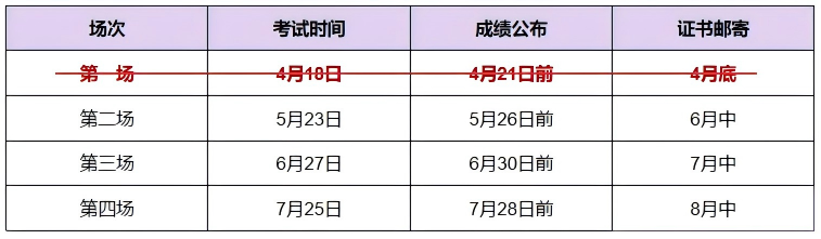 注:赛事下设四场考试场次,报名后可任选其中一场进行参赛,证书邮寄时间均以大赛公告栏通知为准。