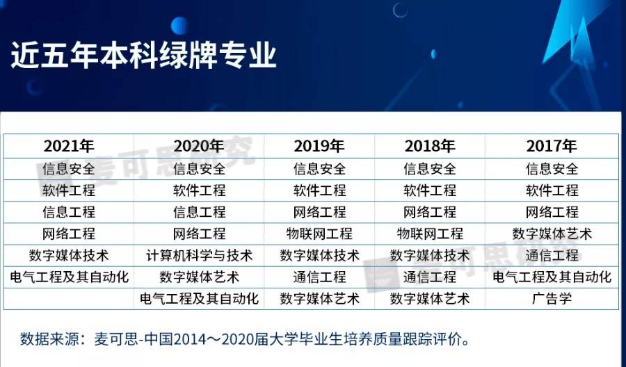 其中,信息安全、软件工程等专业连续多届都是绿牌专业。