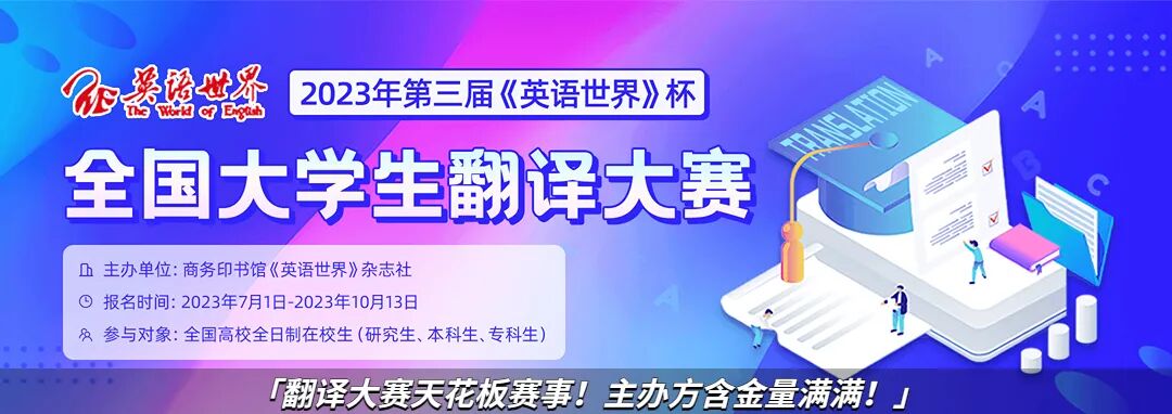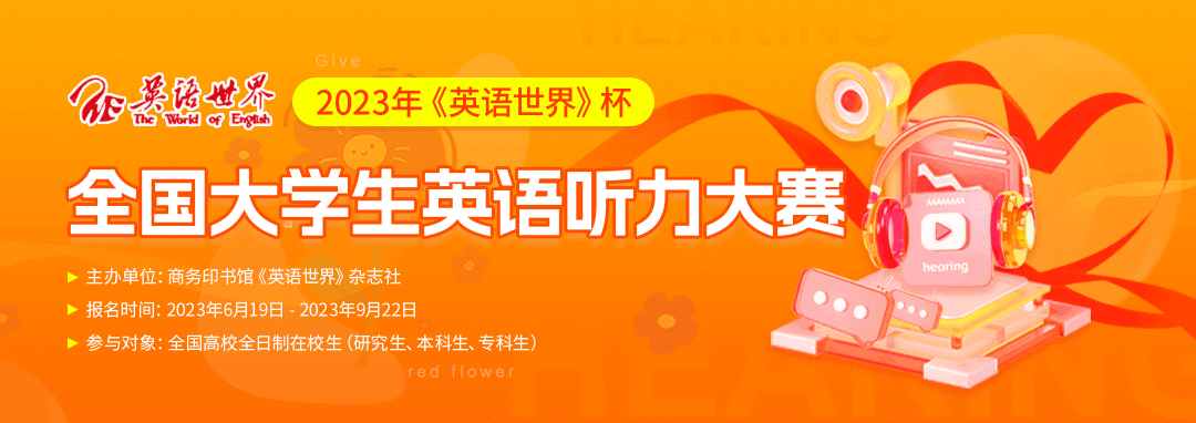 商务印书馆《英语世界》杂志社是“2023年首届《英语世界》杯全国大学生英语听力大赛”的主办方。各高校可将本次竞赛获奖成绩作为本校大学生综合素质方面测定及加分的重要参考依据