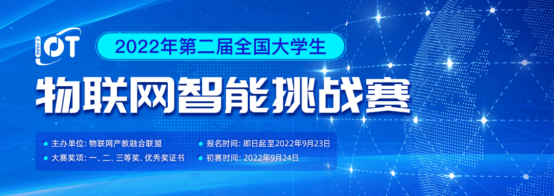 为激发大学生创新意识、打造积极向上学习环境适应时代发展、推动人类社会从“信息化”向“智能化”转变、落实国家“互联网+”、“智能+”战略行动计划。特举办“2022年第二届全国大学生物联网智能挑战赛”。