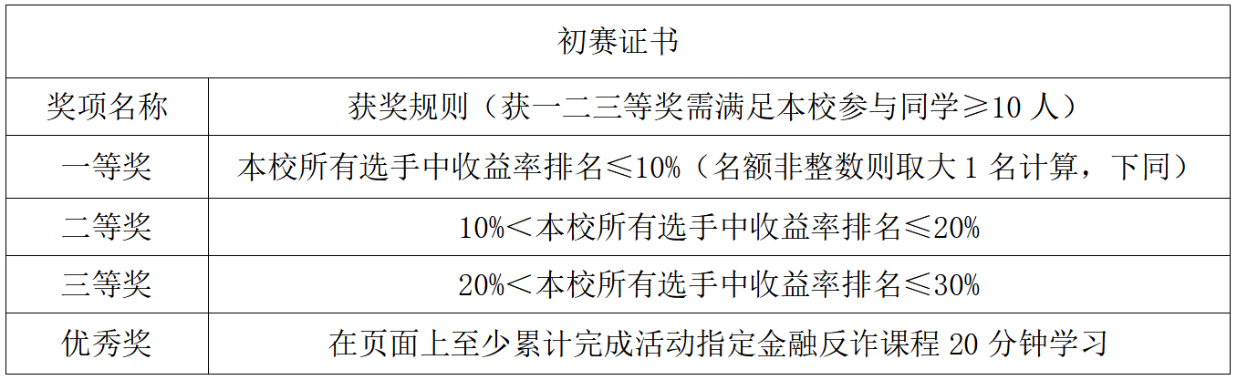 总参与人数排名前 3 的高校(领队老师或代表人)及全国收益率排名前 3 的同学,可获得大赛合作(自)媒体的专访报道。