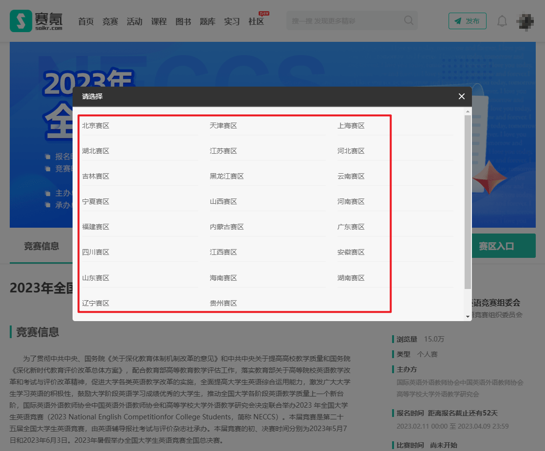 3、点击赛区入口