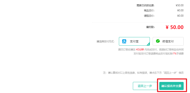 注意:使用支付宝支付订单,如之后退费将由支付宝扣除1%手续费。