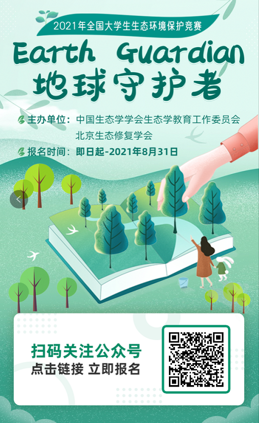 在此背景下,中国生态学学会生态学教育工作委员会与北京生态修复学会,联合主办了“2021年全国大学生生态环境保护竞赛”,旨在动员全国青年大学生的力量,为生态环境保护贡献自己的一份力量!