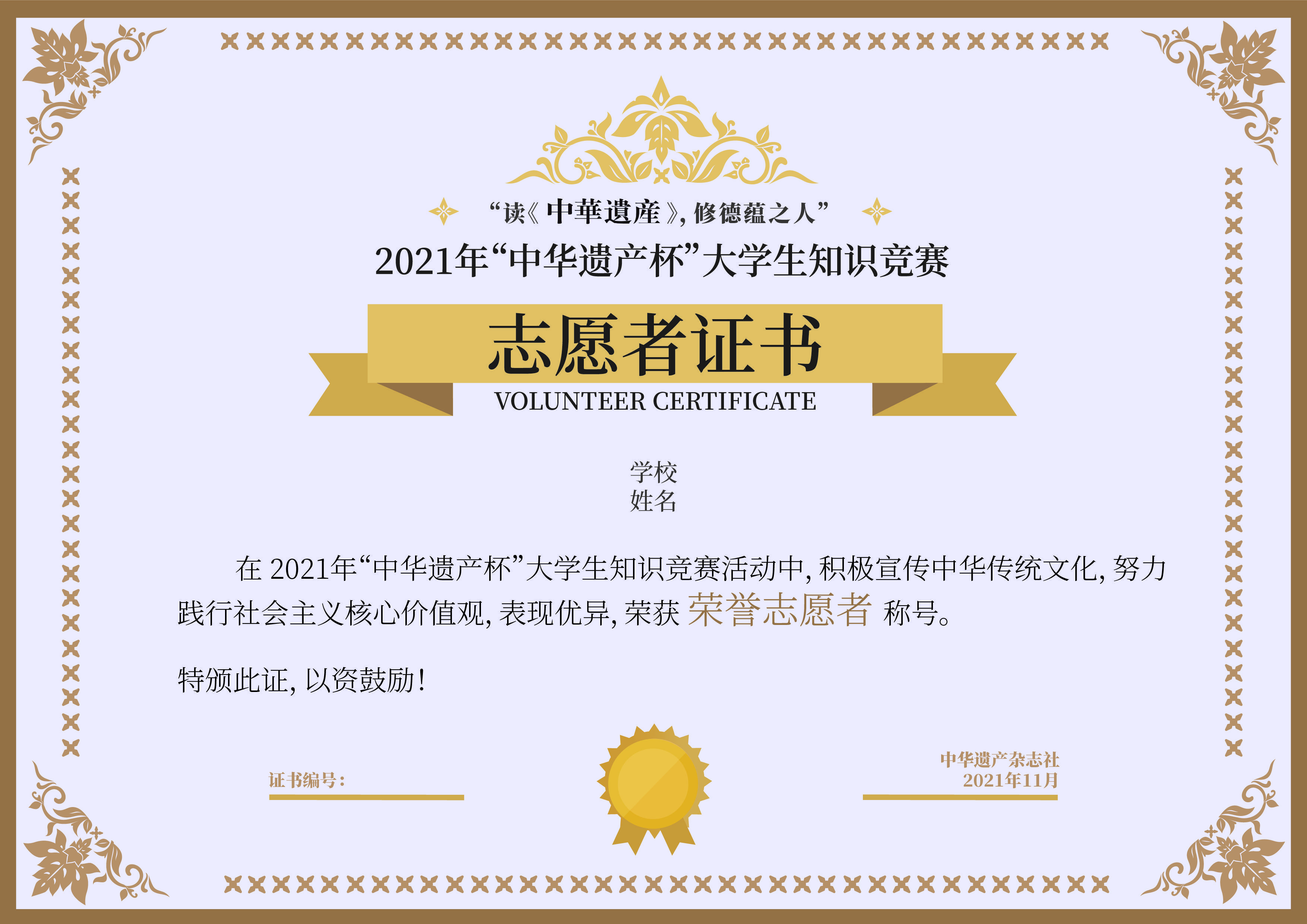 【证书申领中】“读《中华遗产》,修德蕴之人”2021年“中华遗产杯”大学生知识竞赛