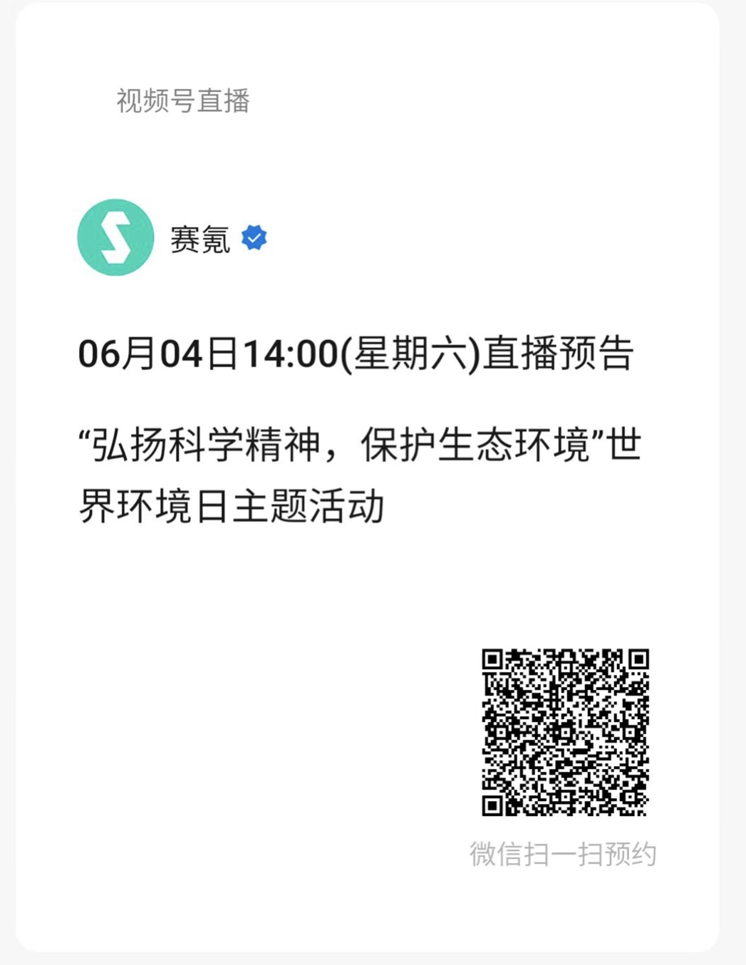 —关注“赛氪视频号” ,扫码预约直播—