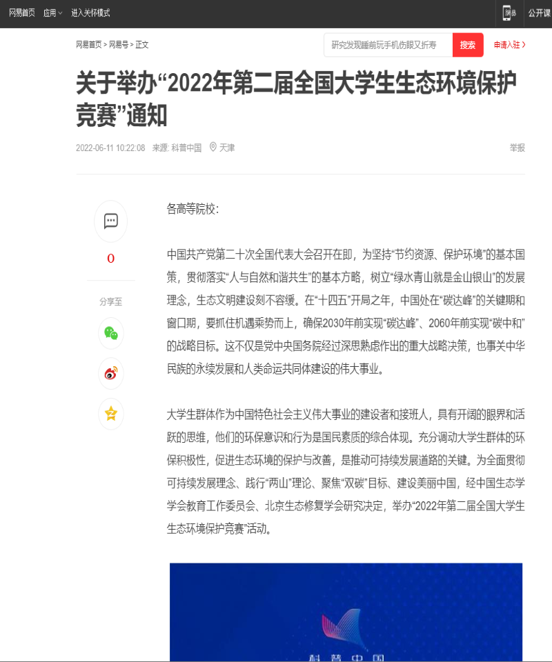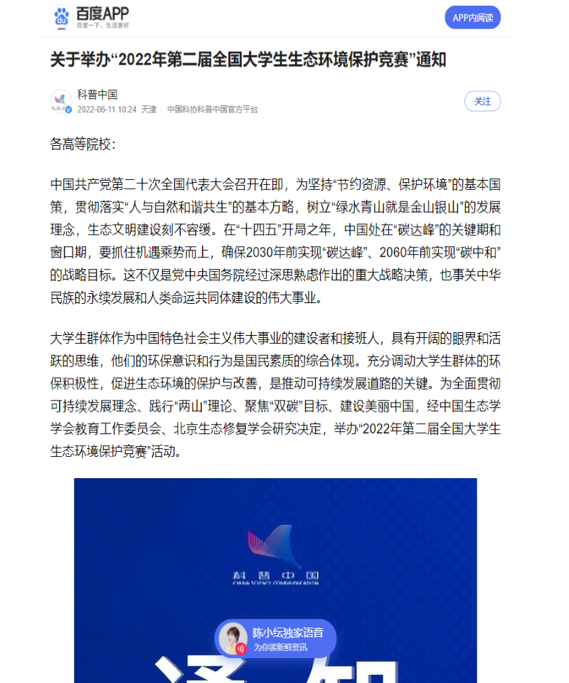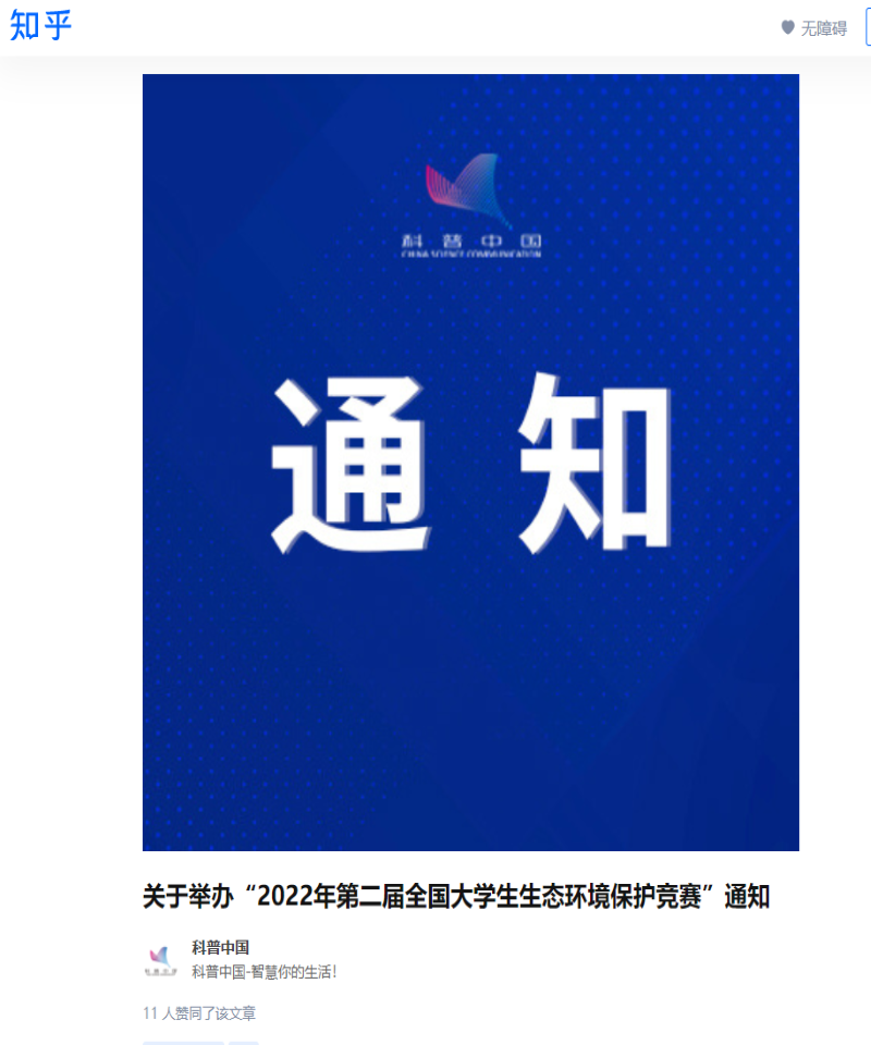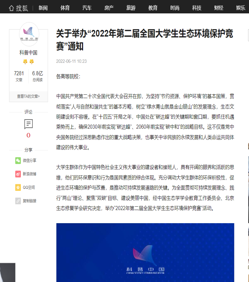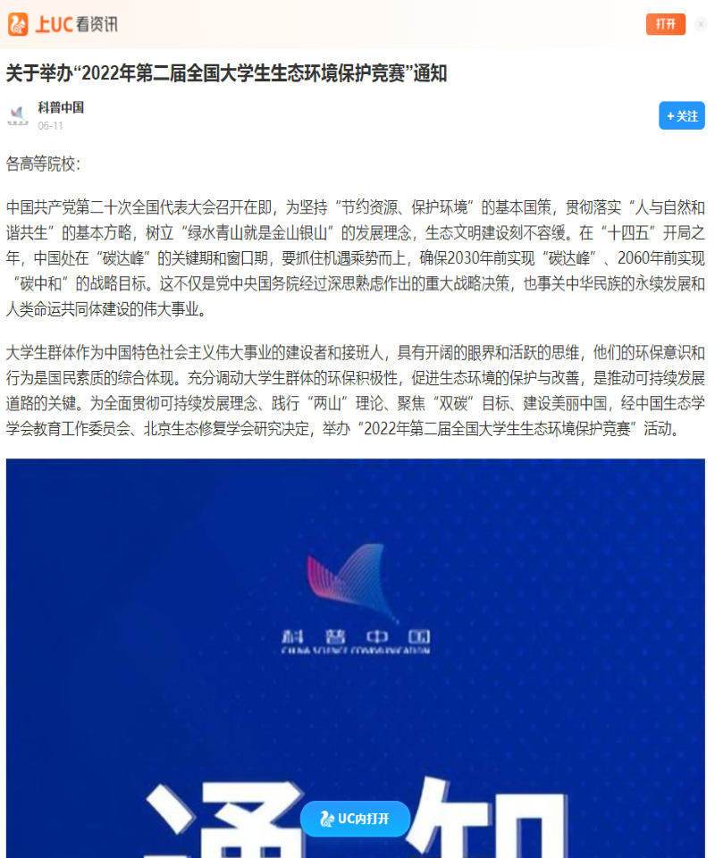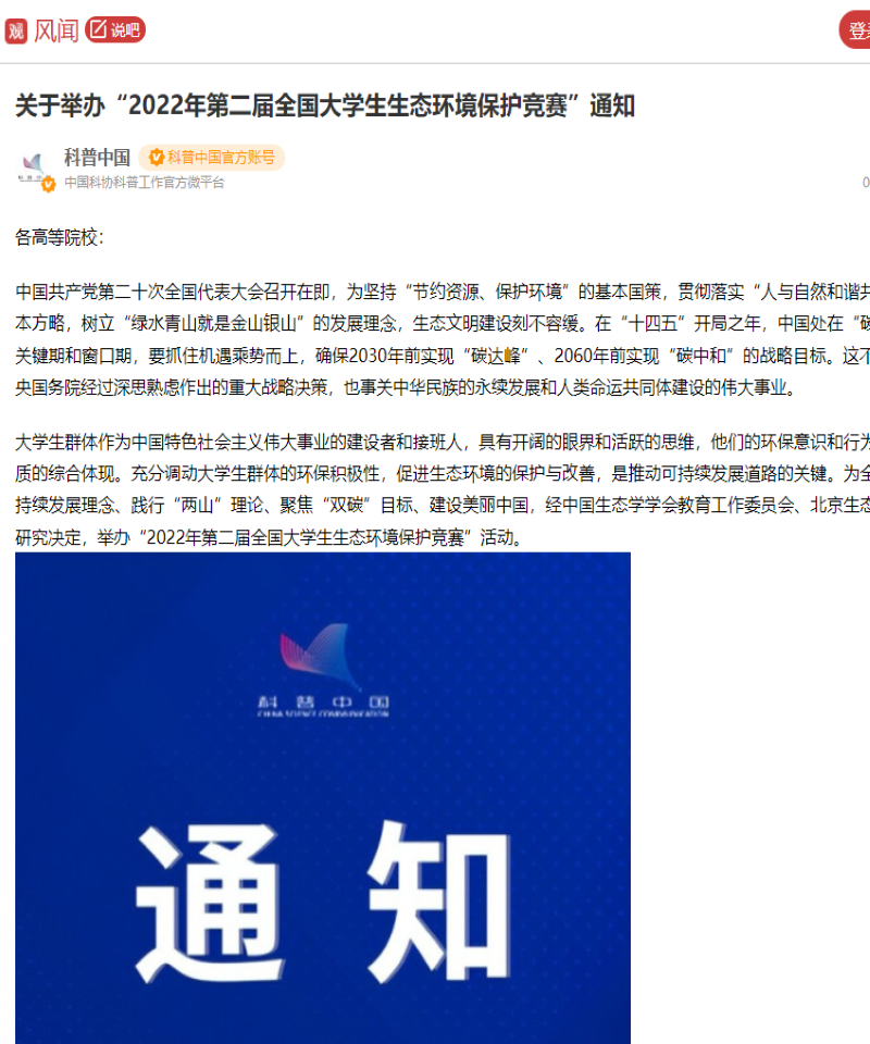 科普中国(中国科协塑造的品牌)强烈推荐大赛:“2022年第二届全国大学生生态环境保护竞赛”