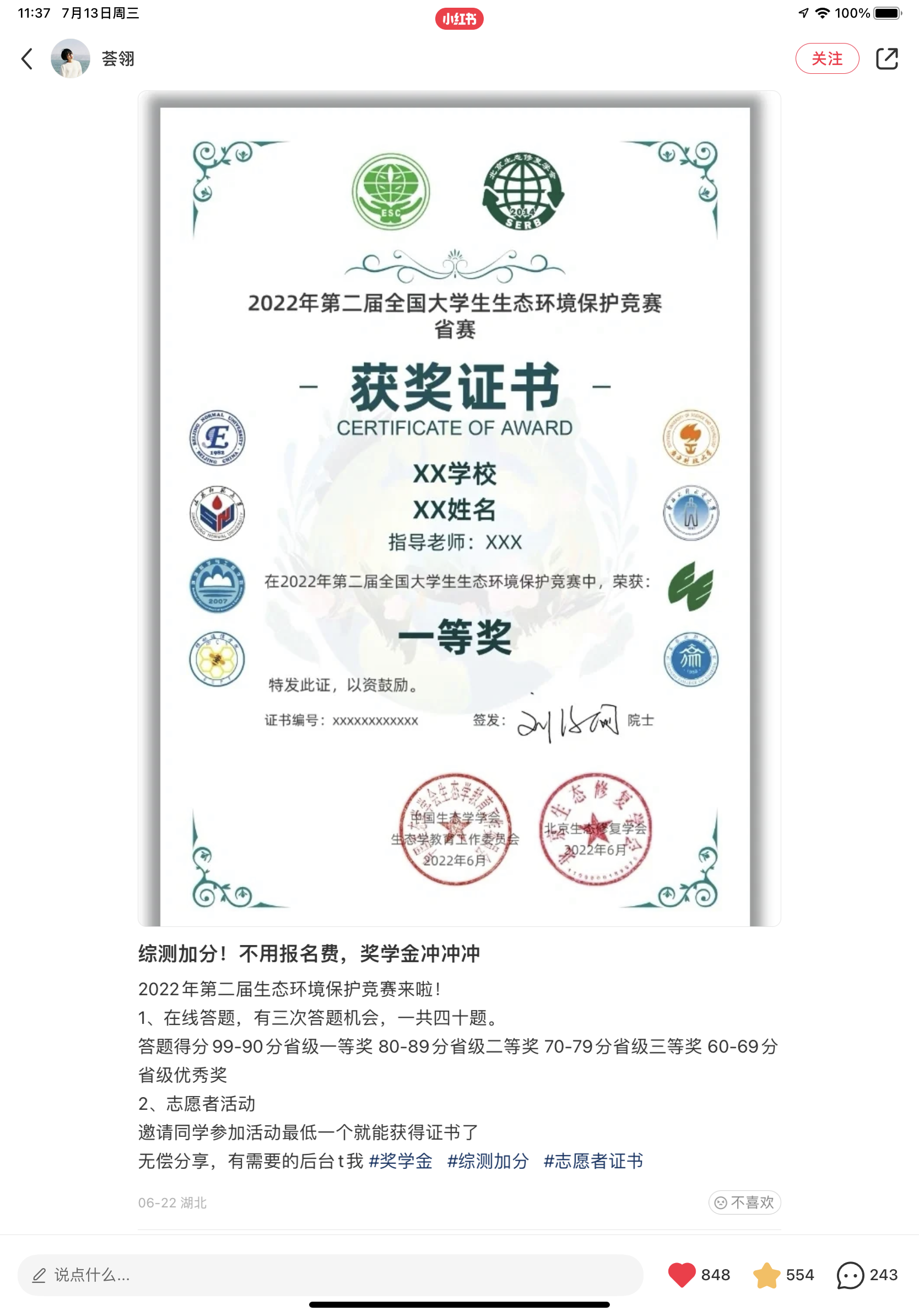 因本次大赛周期较长,应广大参赛同学的需求,原定于大赛结束后开放的【志愿者证书】申领于2022年7月26日上午10:00提前开放。电子版证书因需后台数据统计合成定于2022年8月10日开放。