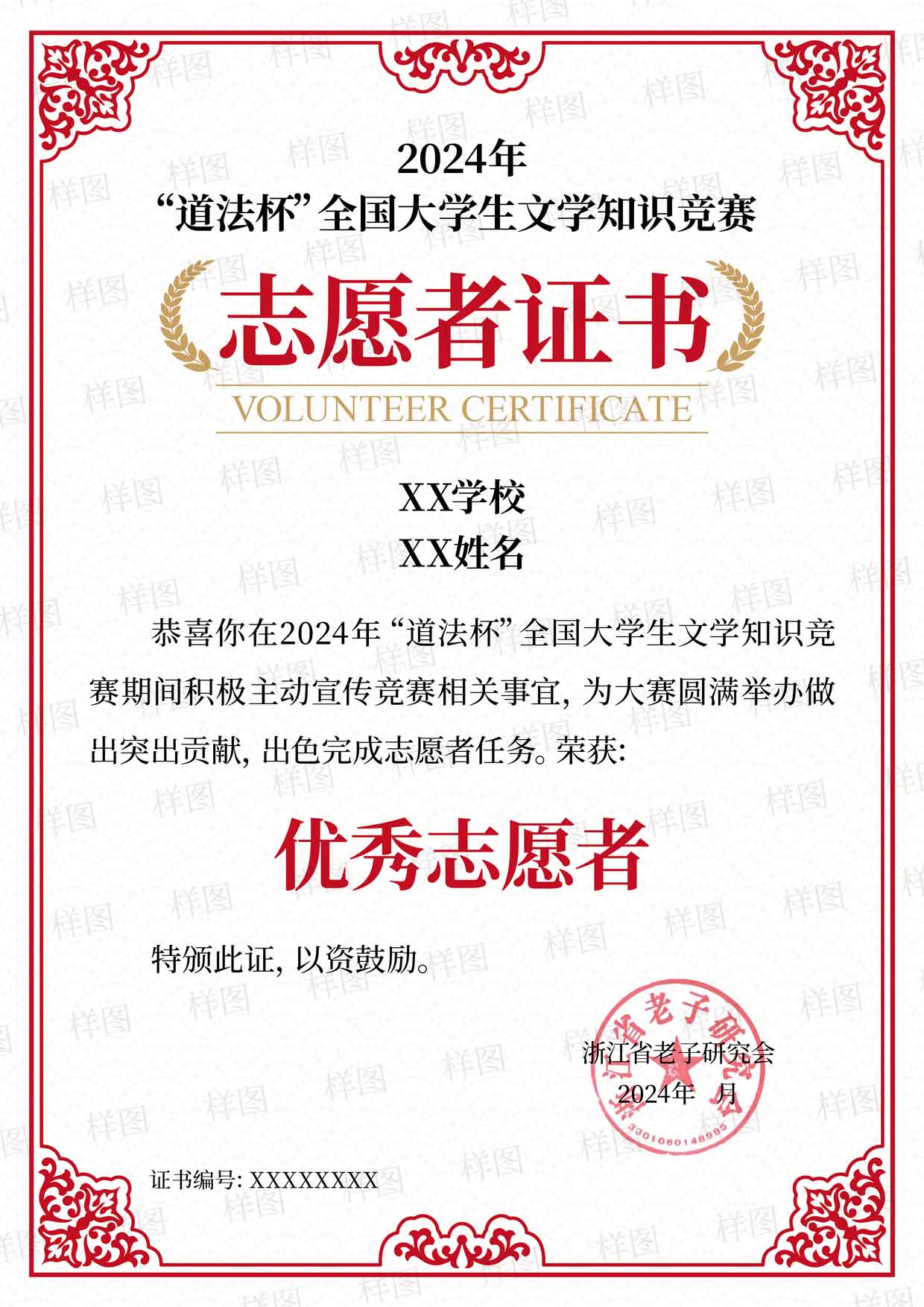 以个人为单位报名参加志愿者活动,推广“道法杯”全国大学生文学大赛,可根据表现获得相应等级的志愿者证书