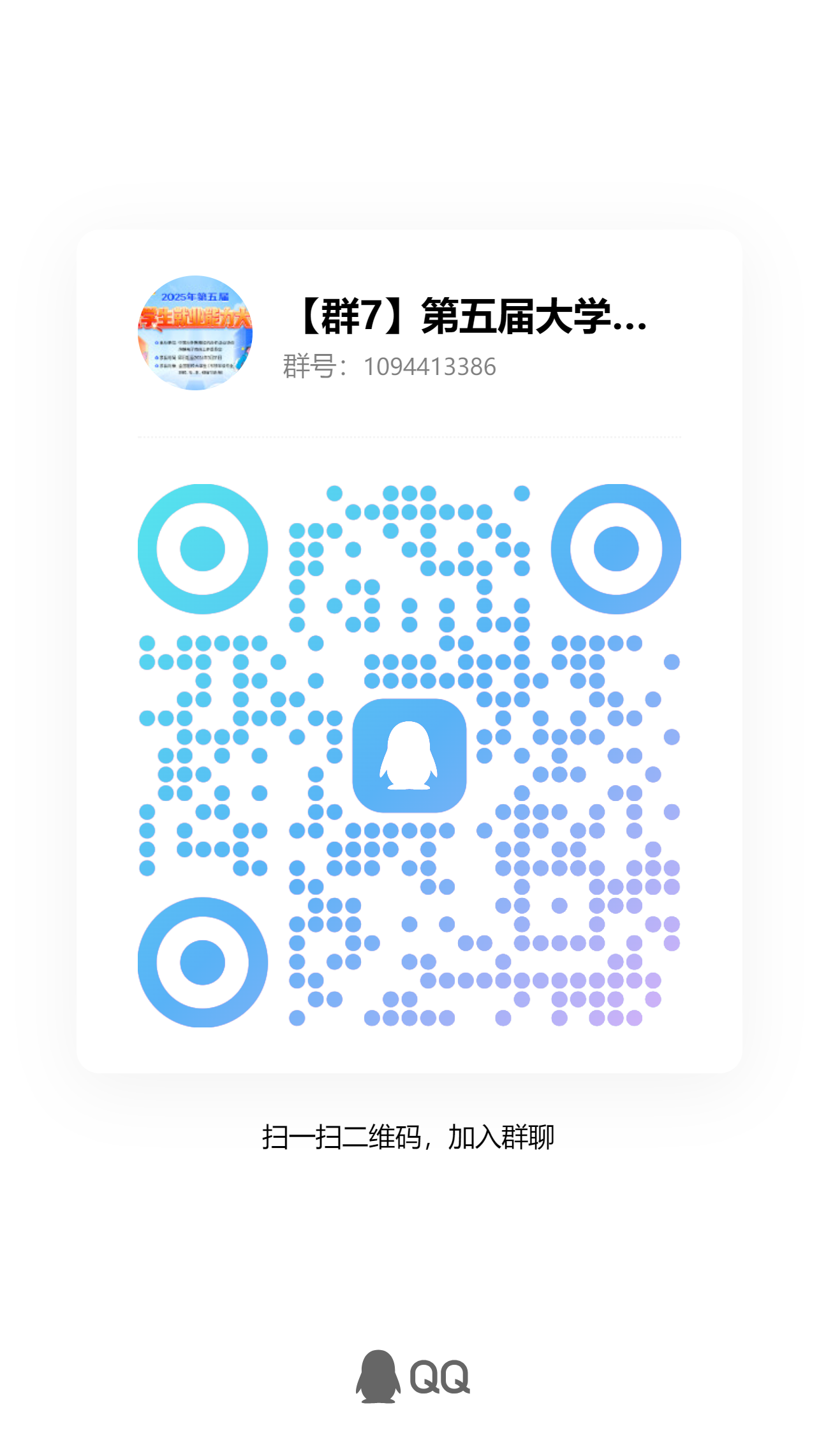 2、电子版获奖证书、志愿者证书公布:等待QQ群内通知:请点击左下方【官方交流群】如遇长按不能识别,是微信限制第三方链接跳转,请截图后QQ内扫码进群。
