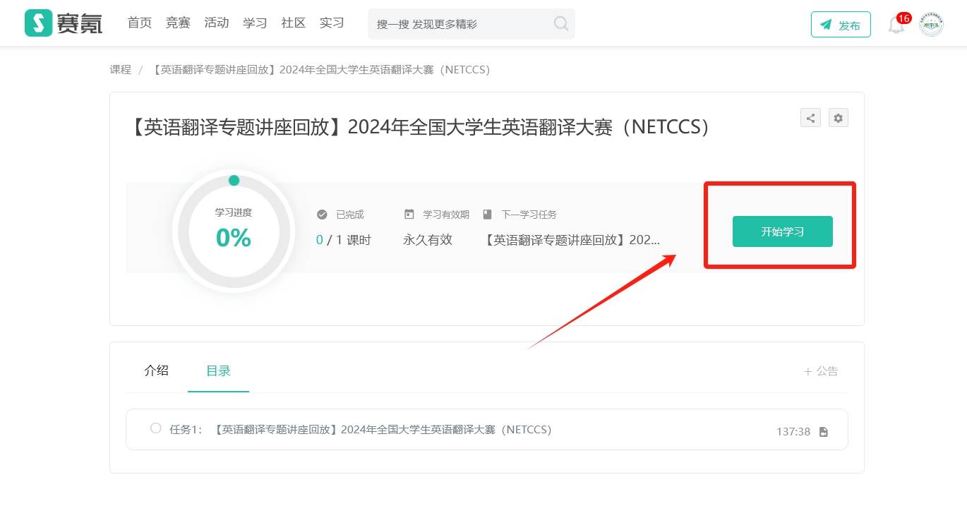 点击学习—点击课程—点击本次讲座回放—点击开始学习