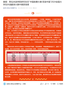 哈尔滨师范大学斯拉夫语学院喜报
