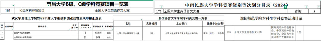 全国大学生英语作文大赛(NEWCCS)分A、B、C、D四个类别组织全国大学生参赛: