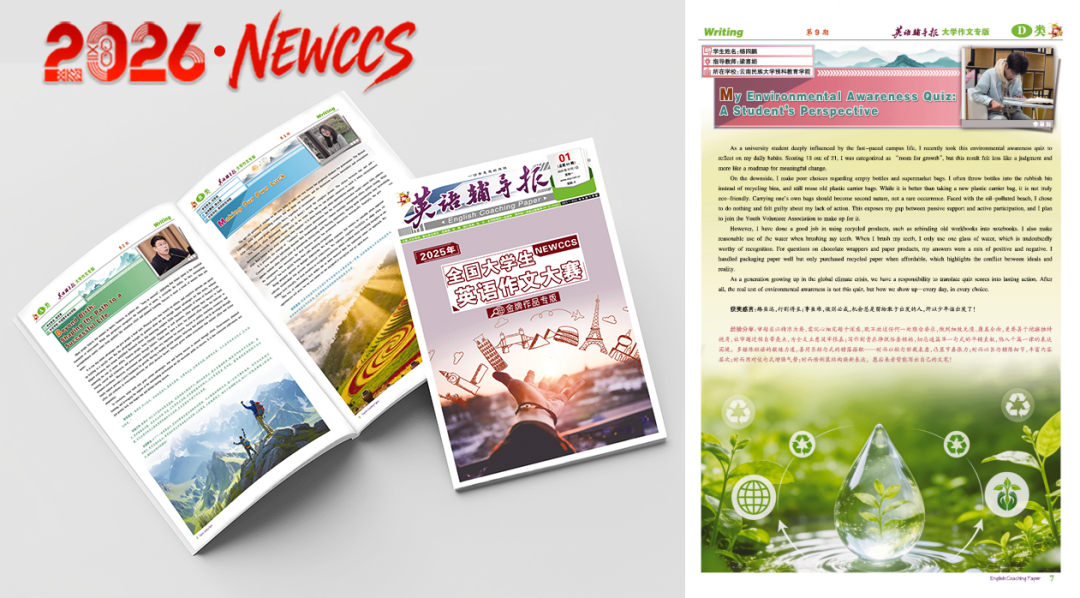 表彰形式(免费刊发出版):荣获国家一等奖的学生作品将择机在《英语辅导报》刊物上免费刊发,并由大赛组委会免费结集出版。