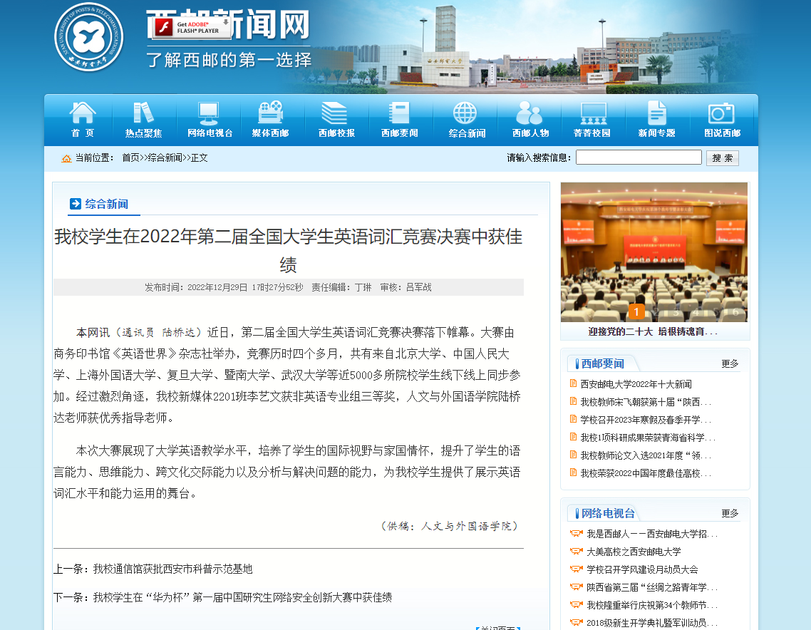 西安邮电大学官网报道展示