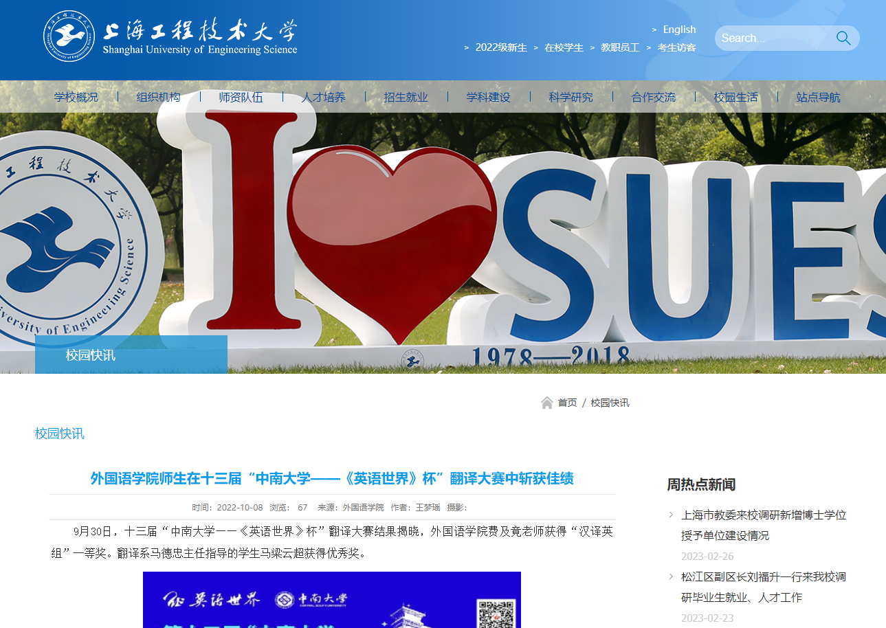 上海工程技术大学官网报道展示