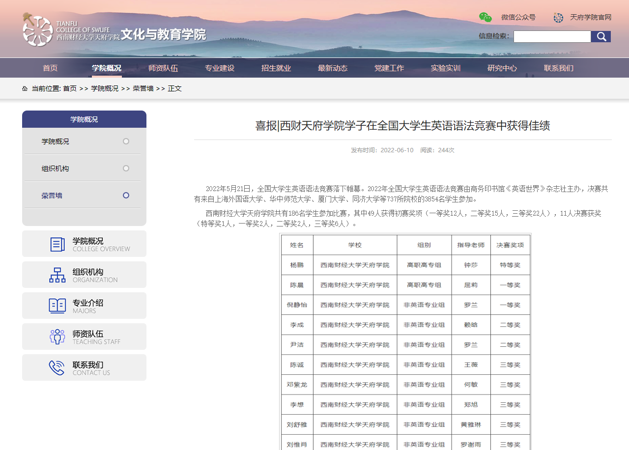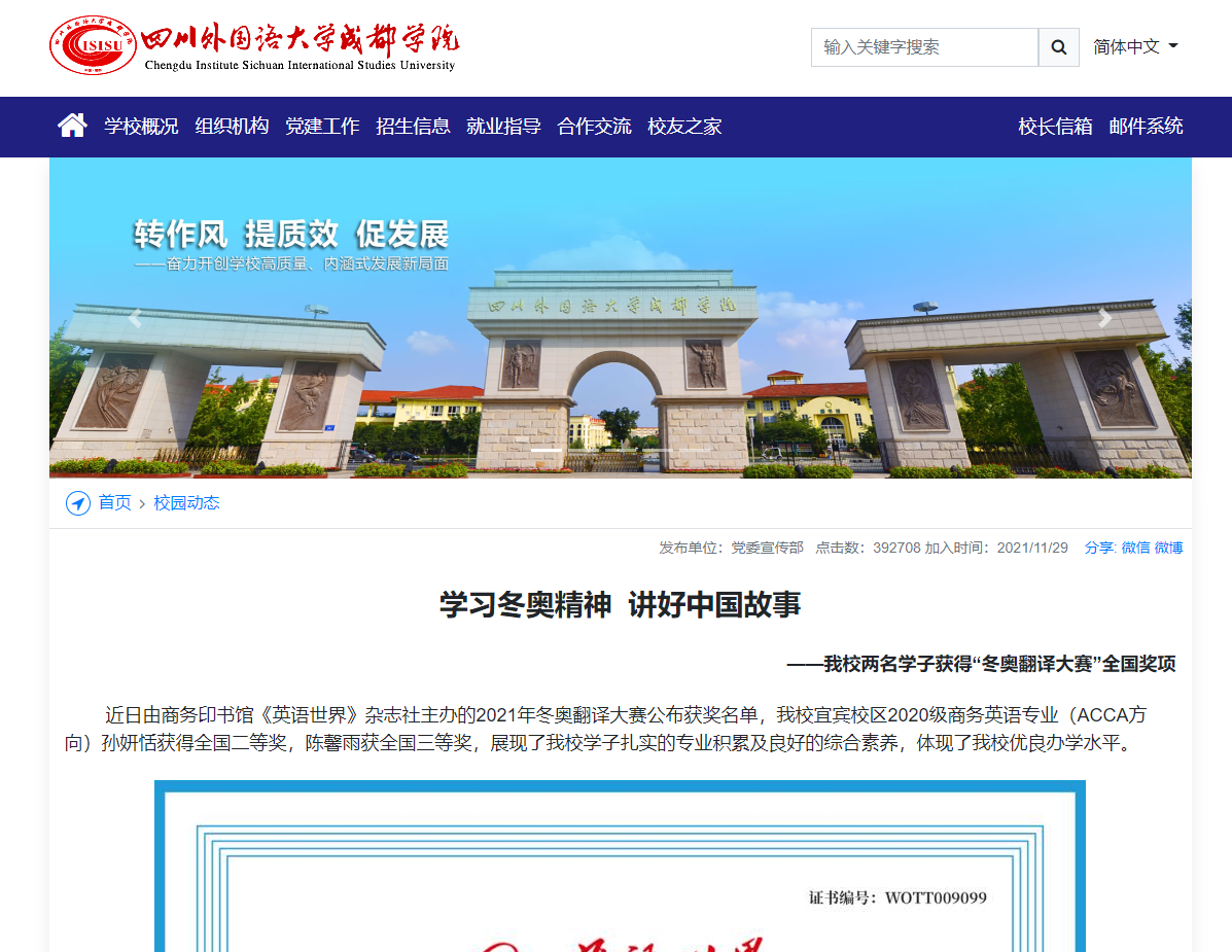 四川外国语大学成都学院官网报道展示