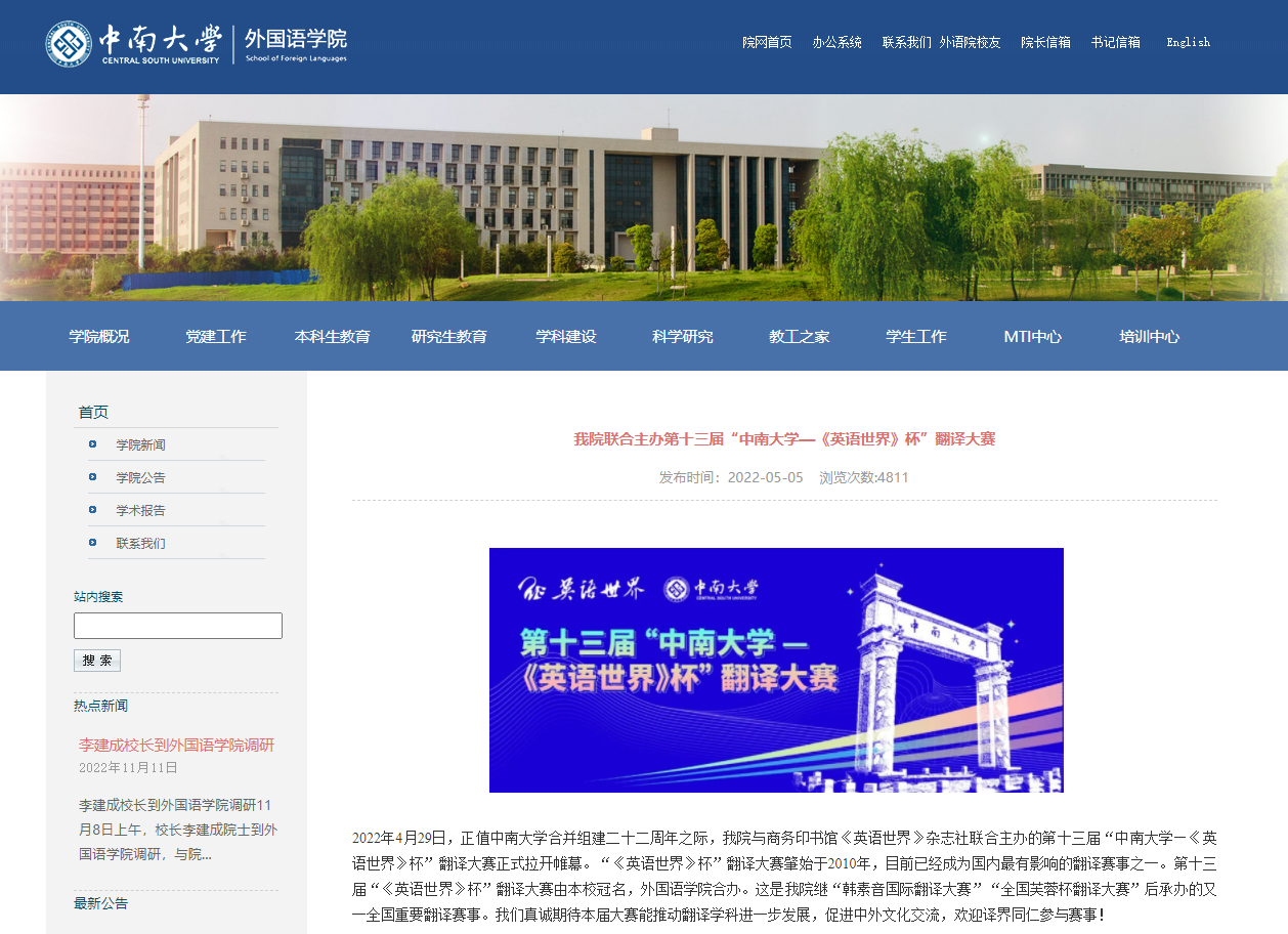 中南大学官网报道展示