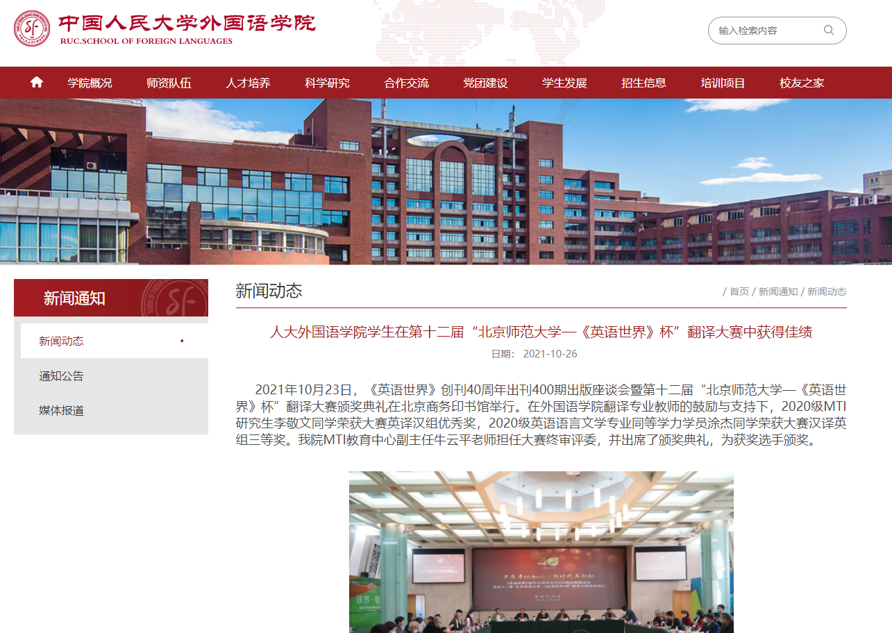 中国人民大学官网报道展示