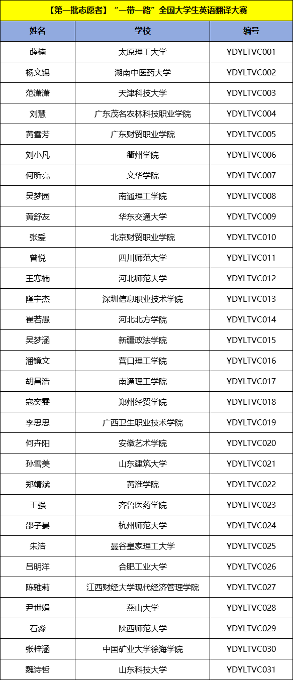 自大赛开始以来,得到了全国各高校老师、同学的广泛支持和关注,目前已统计到第一批志愿者名单如下表所示: