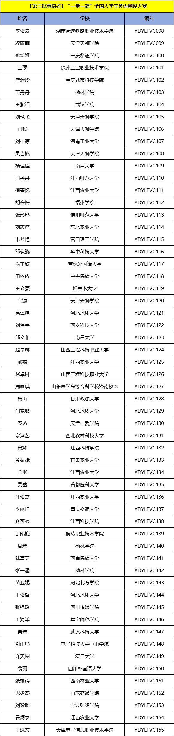 自大赛开始以来,得到了全国各高校老师、同学的广泛支持和关注,目前已统计到第三批志愿者名单如下表所示: