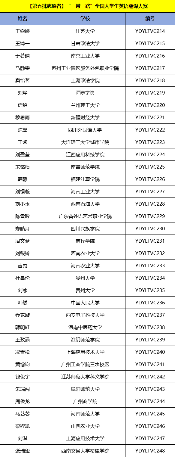 自大赛开始以来,得到了全国各高校老师、同学的广泛支持和关注,目前已统计到第五批志愿者名单如下表所示: