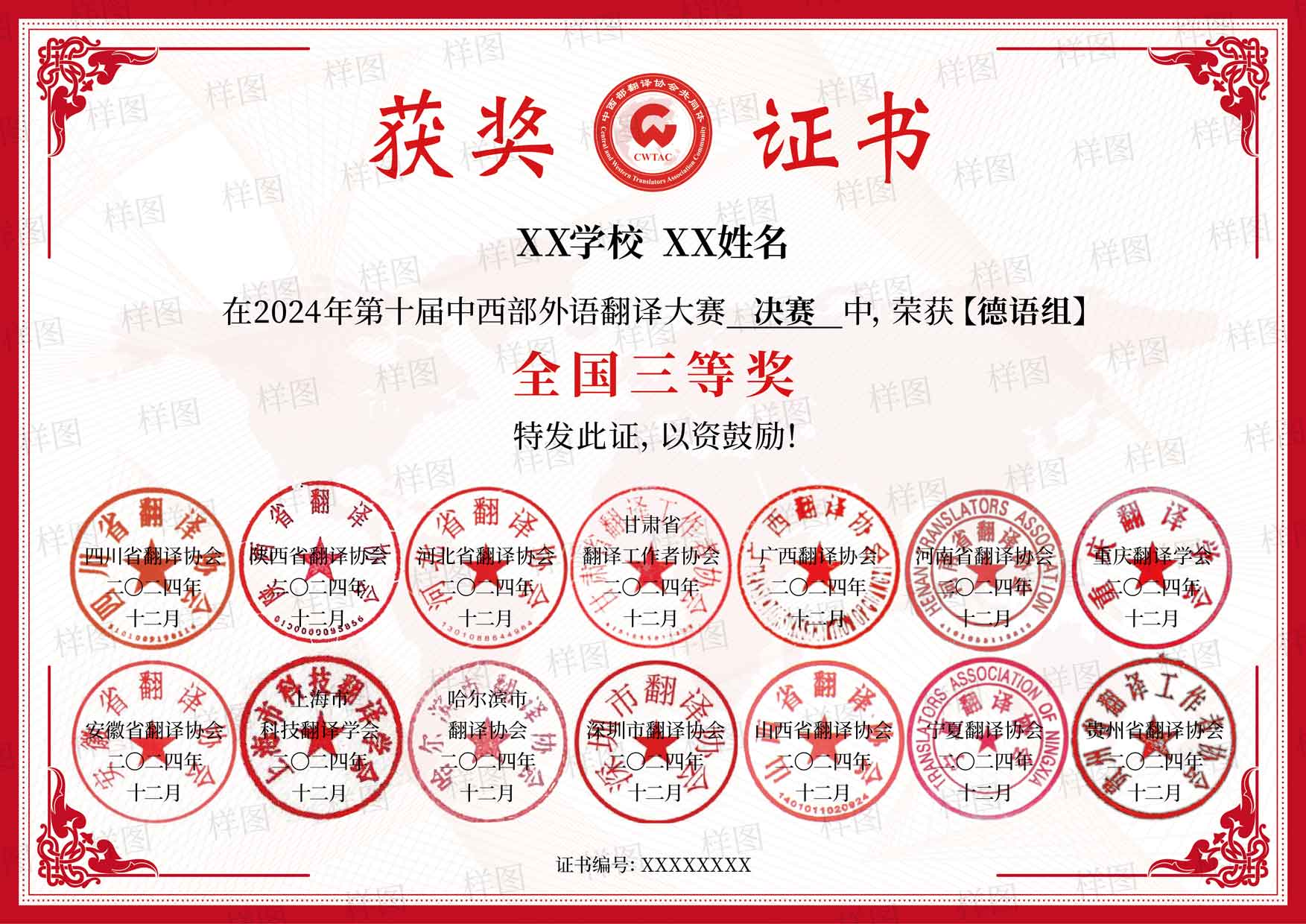 - 获奖证书样图 -