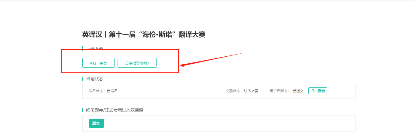 ●赛氪--竞赛详情页--报名管理--上方显示证书,电子版可自行保存,纸质版后续统一邮寄;