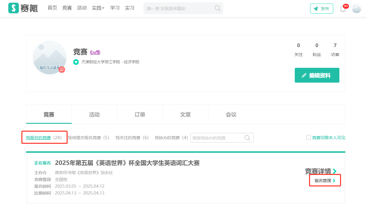 赛氪app-我的-报名-竞赛-查看报名信息-立即添加