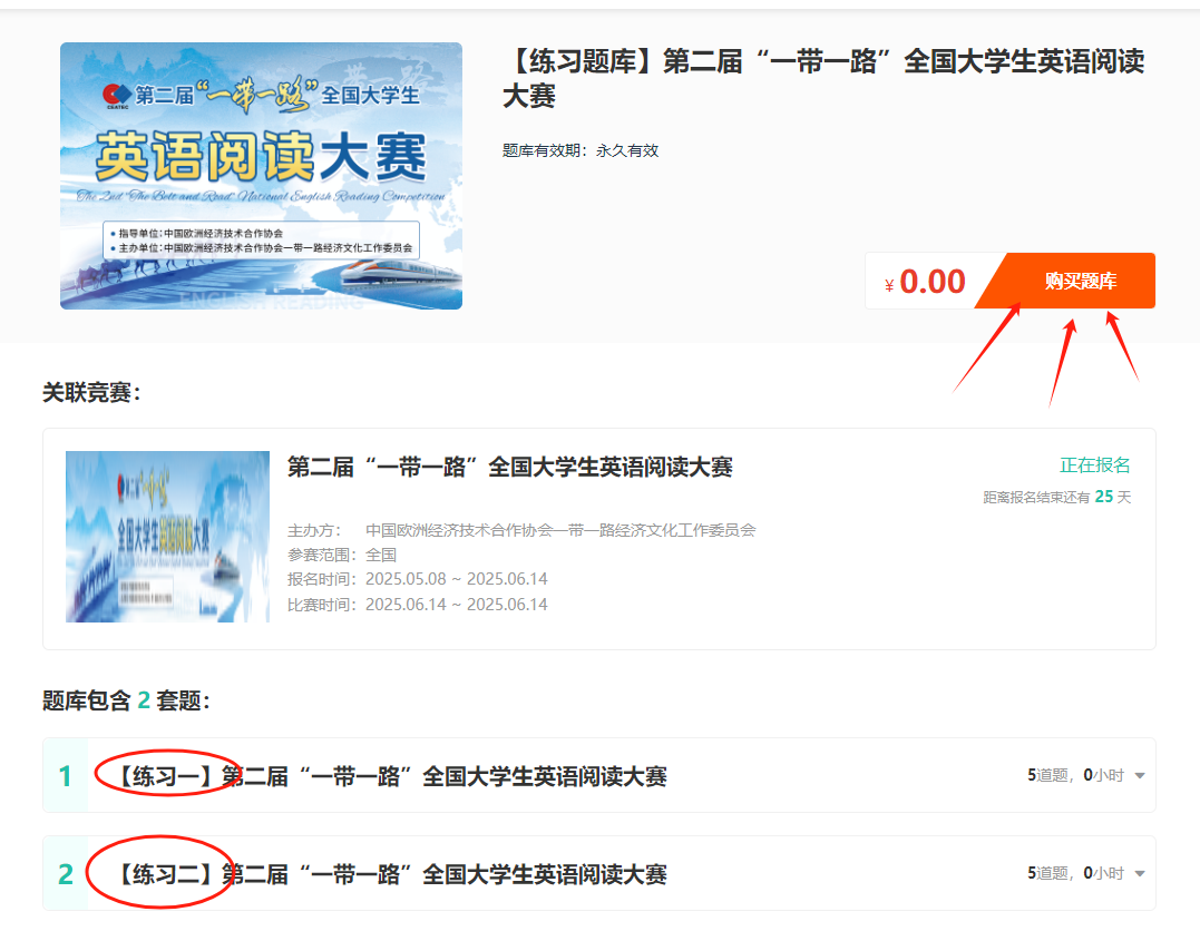 step2:看清楚考场标题前缀!红色框为【练习题库】,各位参赛选手必选!