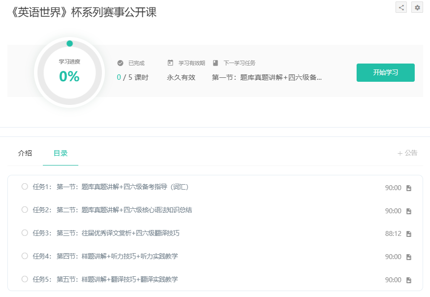 《英语世界》杯系列赛事公开课包含:《英语世界》杯往届大赛赛题讲解+四六级学习技巧+英语专业就业方向,报名成功即可免费获得公开课珍贵资料。