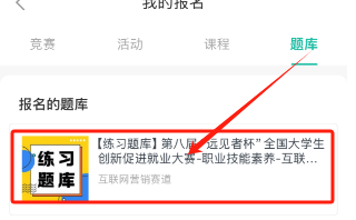 返回我的页面,可看见题库,找到对应赛道,即可练习