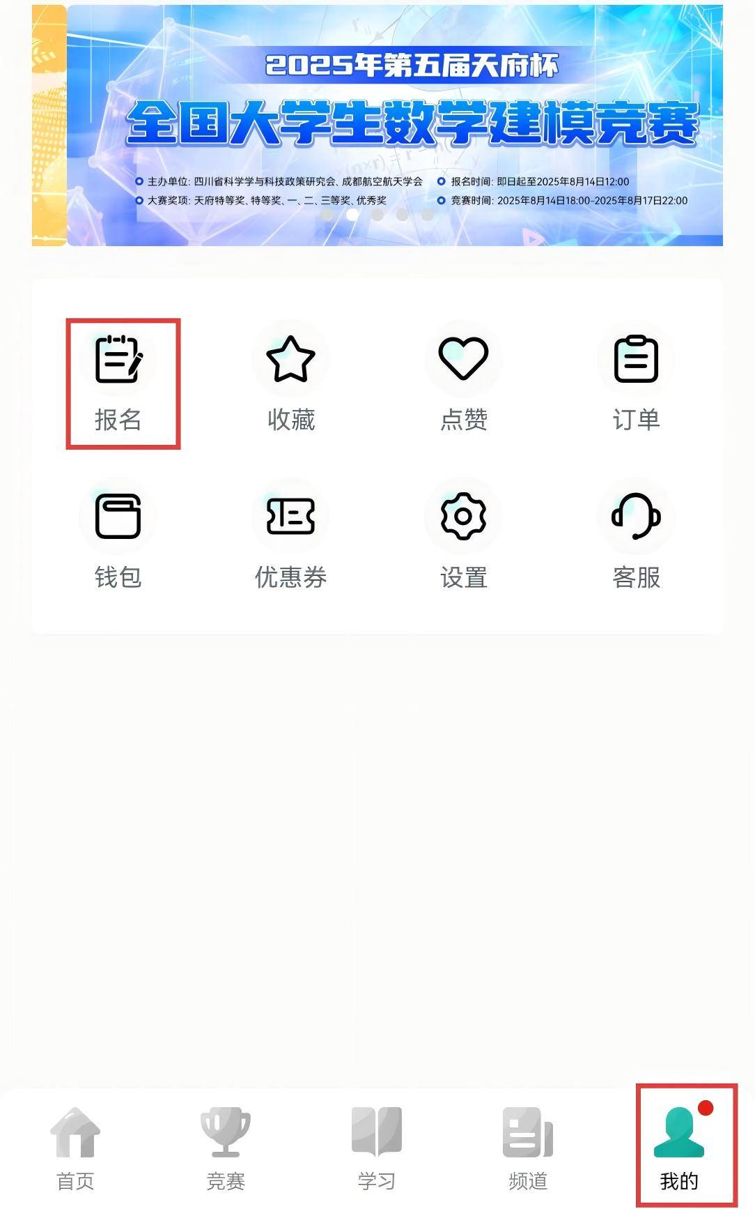 加入考场:打开“赛氪”App-点击“我的”-点击“报名”-进入比赛页面
