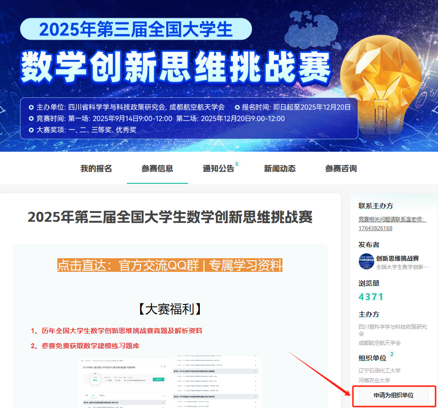 或登陆竞赛官网:在首页申请组织单位: