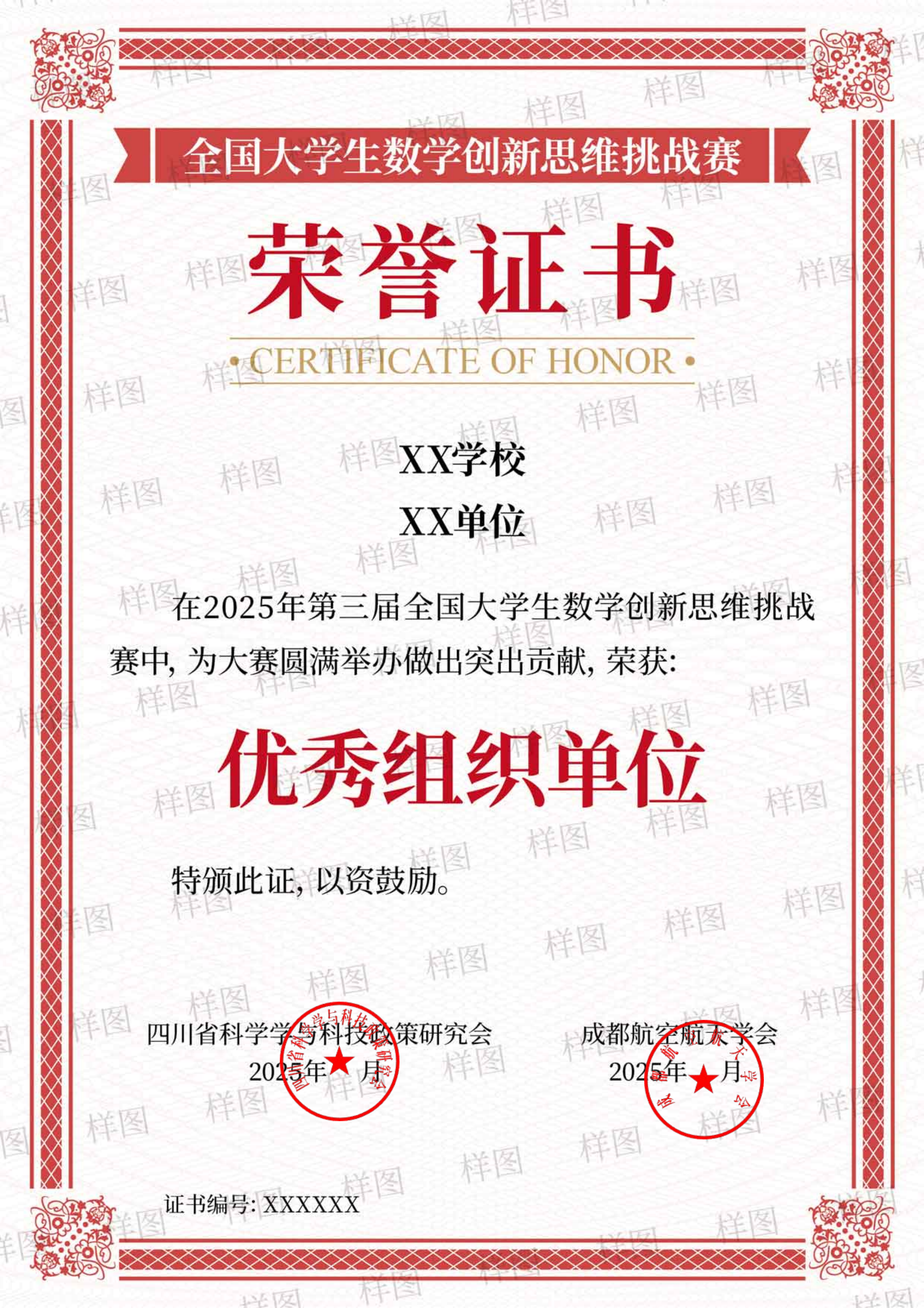 根据参赛队伍得奖情况和组织参赛队伍数量综合评定,组织报名超过20人,颁发优秀组织单位荣誉证书;