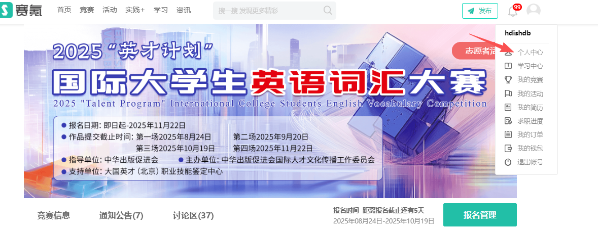 1.下载赛氪 app,登录后点击“我的”——“报名”——找到报名的竞赛;