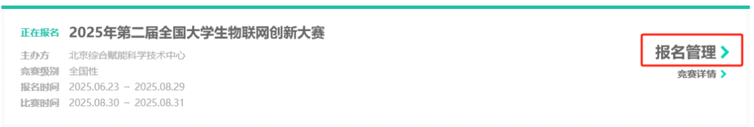一、报名成功后,在官网页面点击【报名管理】。