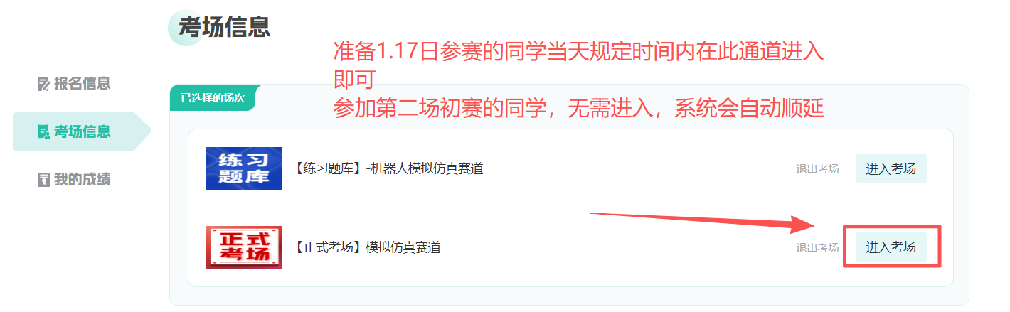 不准备参加第一场初赛的同学无需其他操作,系统会自动顺延至第二场初赛。