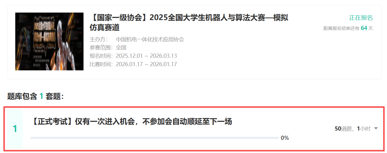 第一场初赛:2026年1月17日10:00-17:00(考试时间为60分钟)