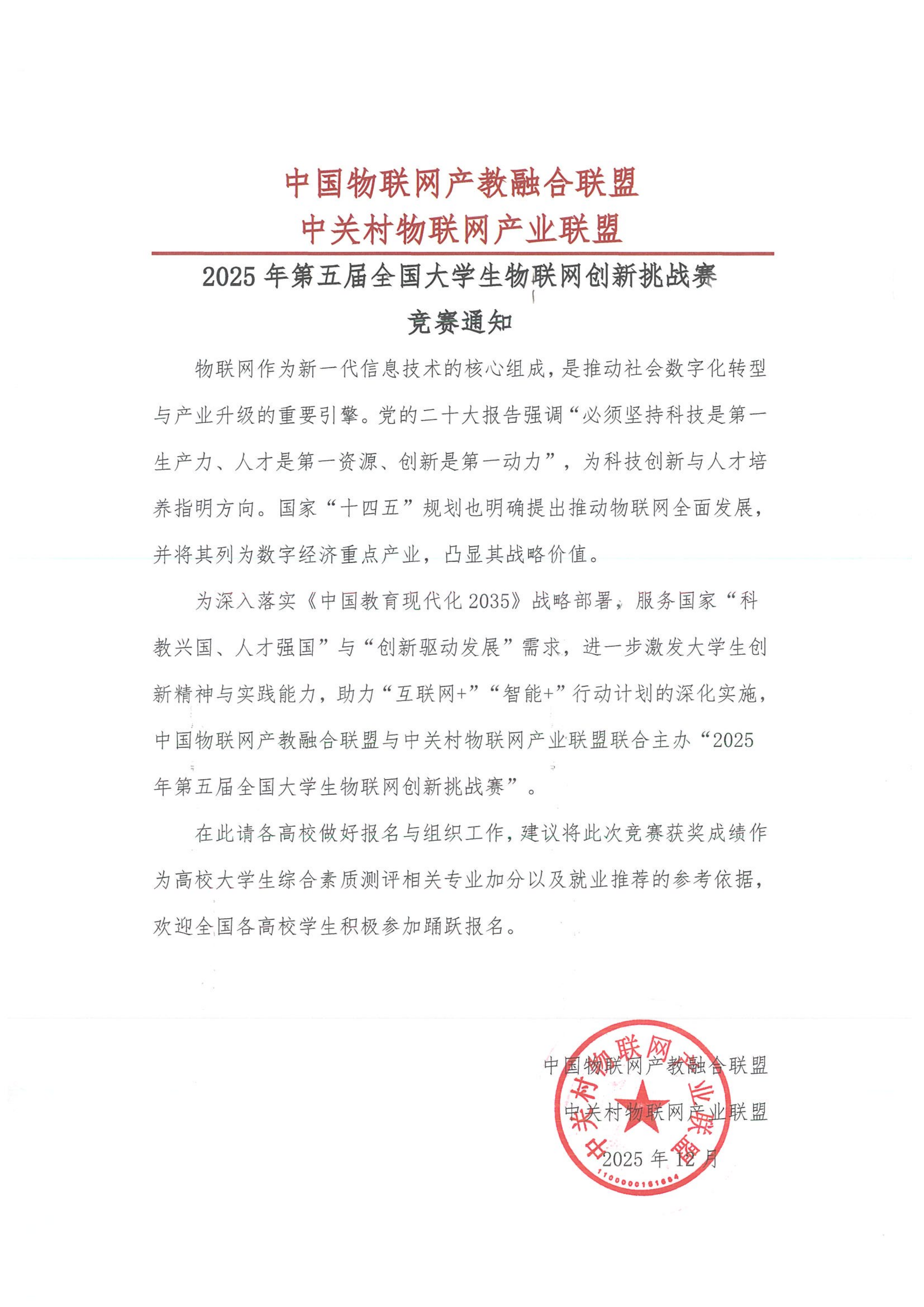 【竞赛通知文件】2025年第五届全国大学生物联网创新挑战赛