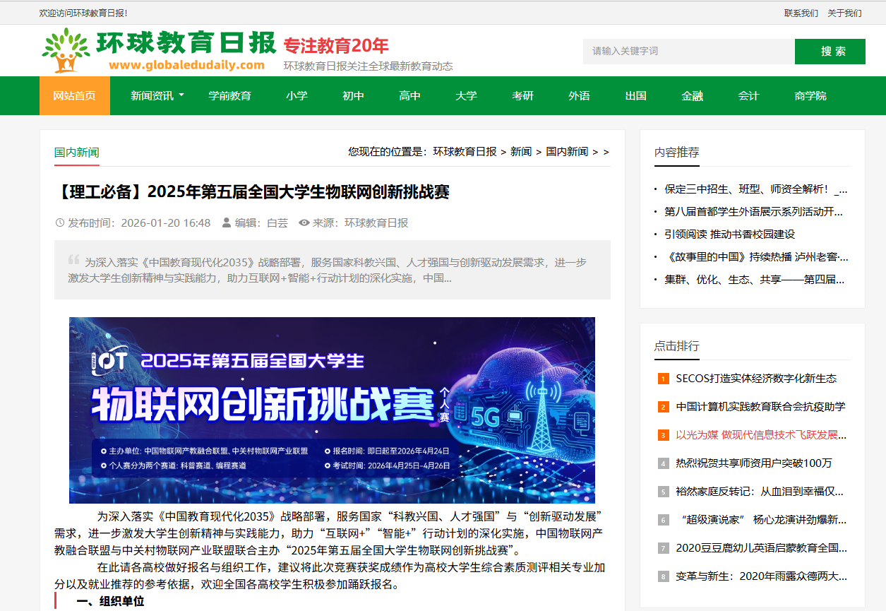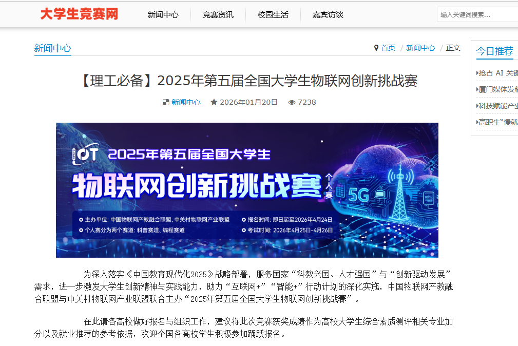 为深入落实《中国教育现代化2035》战略部署,服务国家“科教兴国、人才强国”与“创新驱动发展”需求,进一步激发大学生创新精神与实践能力,助力“互联网+”“智能+”行动计划的深化实施,中国物联网产教融合联盟与中关村物联网产业联盟联合主办“2025年第五届全国大学生物联网创新挑战赛”。